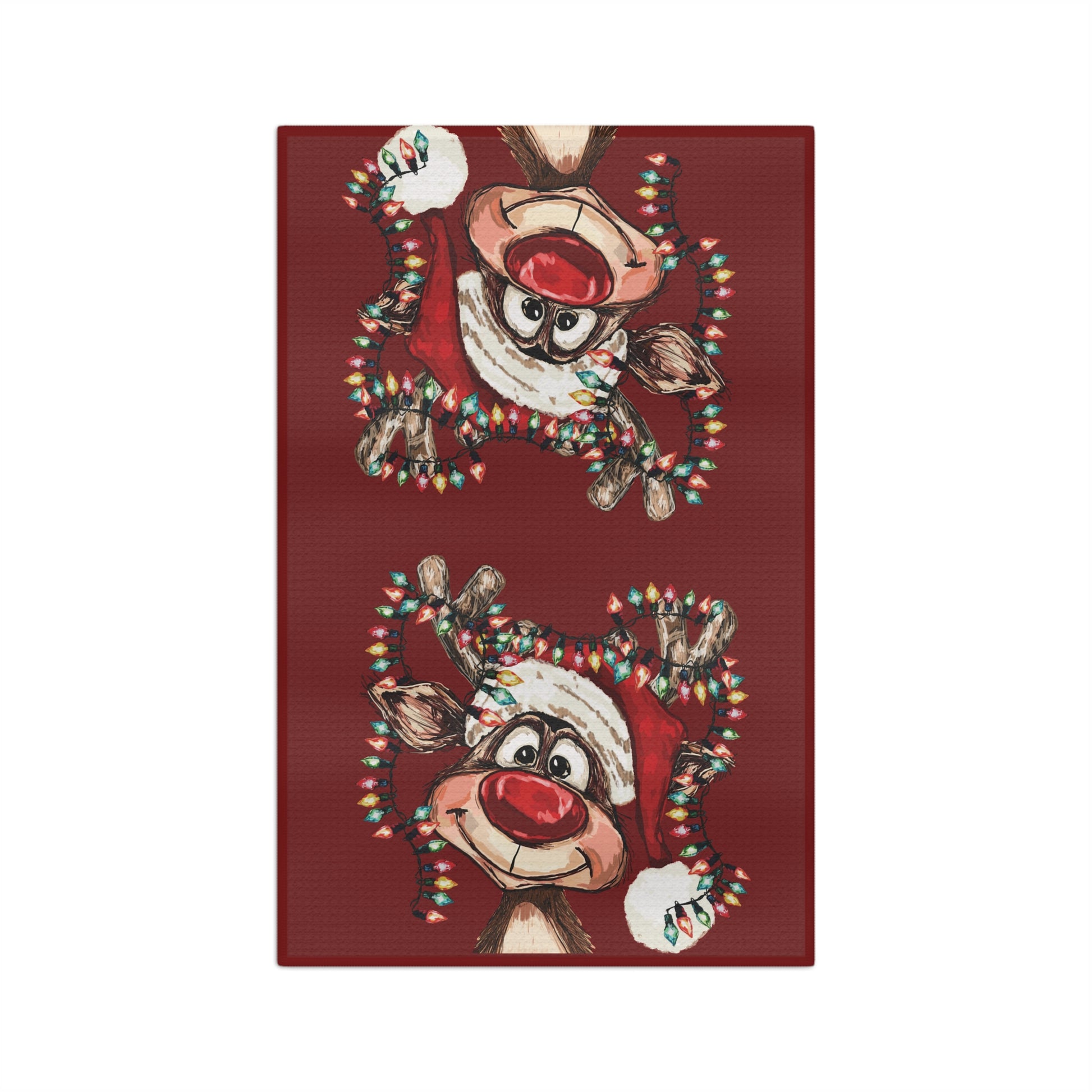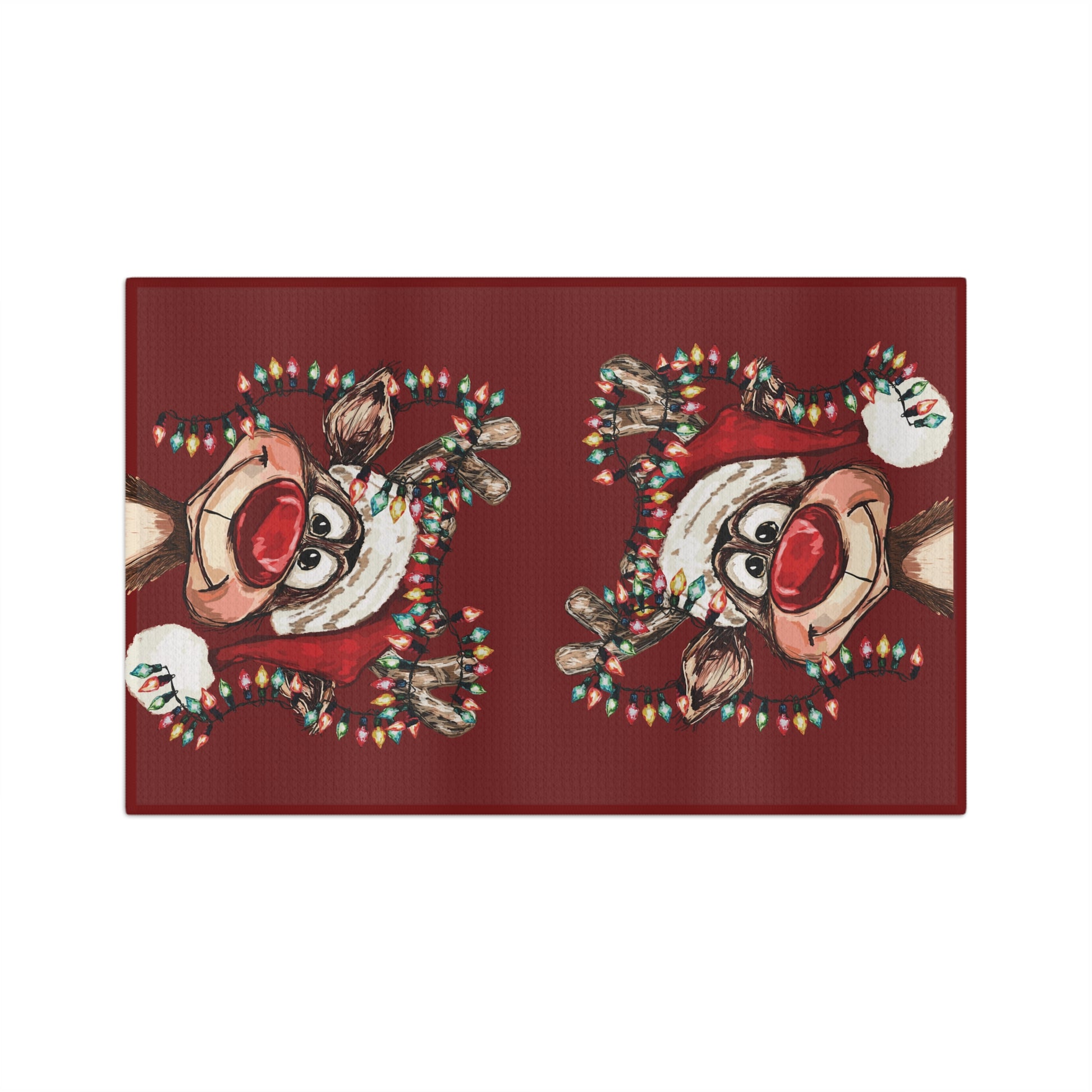 Cheerful Christmas Reindeer Microfiber Waffle Kitchen Towel